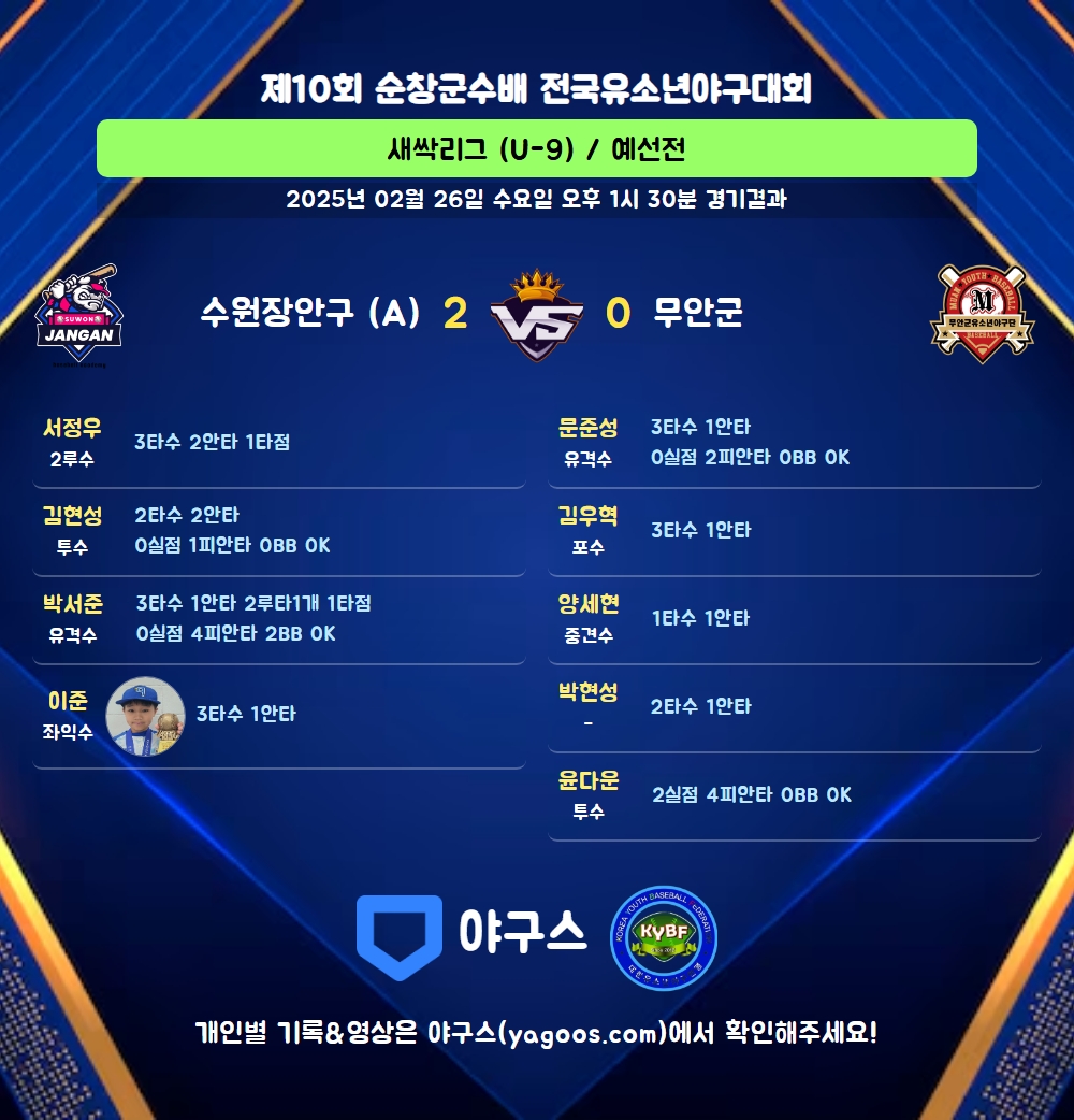 | 99 | - | 박현성(32) | - | 아웃/투땅 | 유내안 | - | - | 2 | 1 | - | - | - | - | - | - | 0.500 |