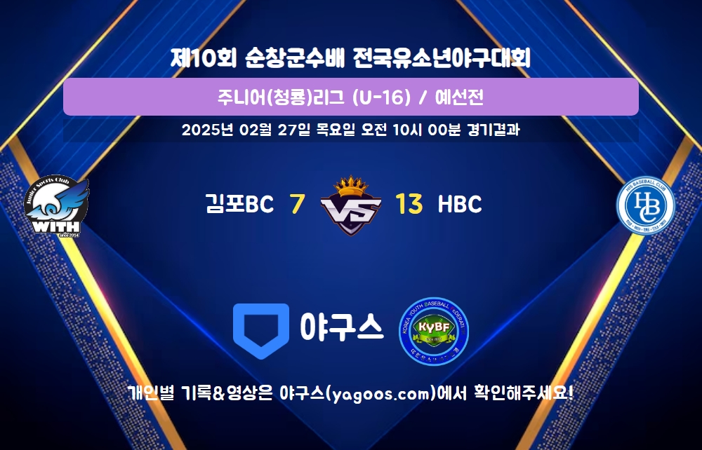 | 팀명 | 1회 | 2회 | 3회 | 4회 | 5회 | 6회 | 7회 | R | H | E | B | L |