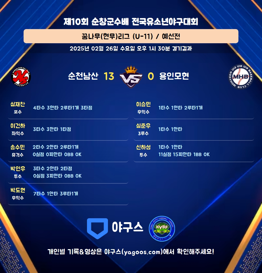 | 2루타 | 송수민(16) 심재찬(37) 이승민(111) |
