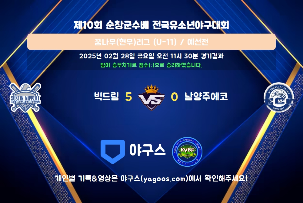 | 팀명 | 1회 | 2회 | 3회 | 4회 | 5회 | R | H | E | B | L |