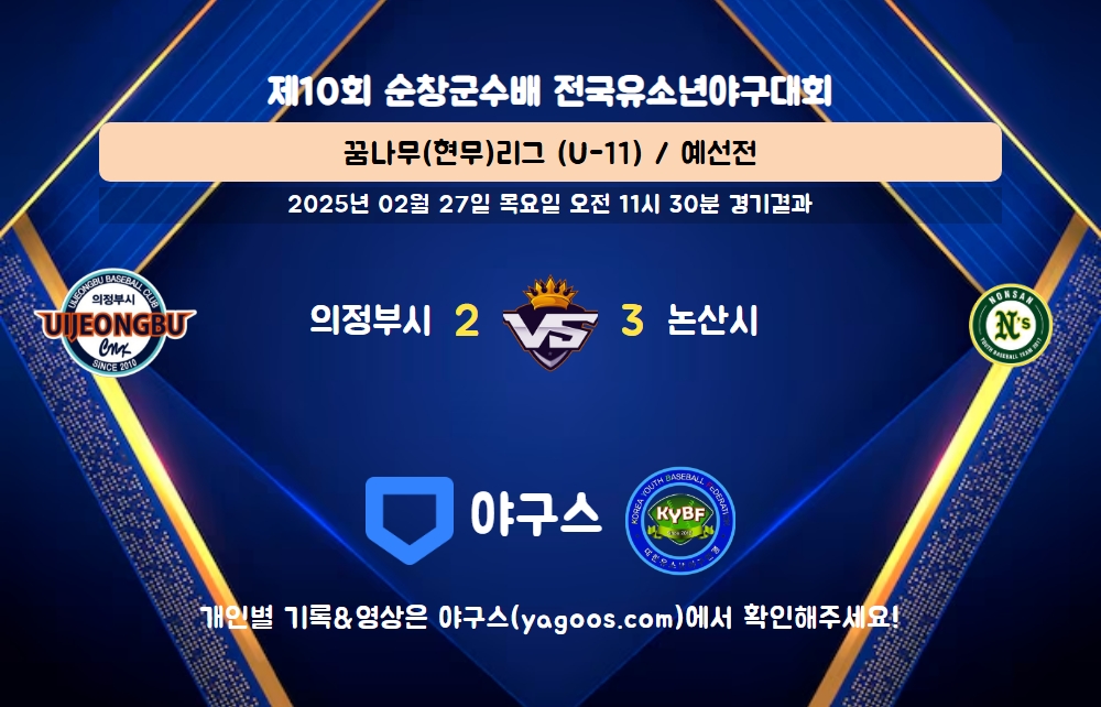 | 팀명 | 1회 | 2회 | 3회 | 4회 | 5회 | R | H | E | B | L |