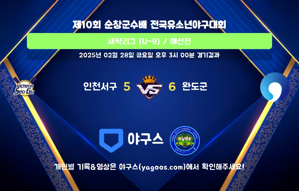 | 팀명 | 1회 | 2회 | 3회 | 4회 | 5회 | R | H | E | B | L |