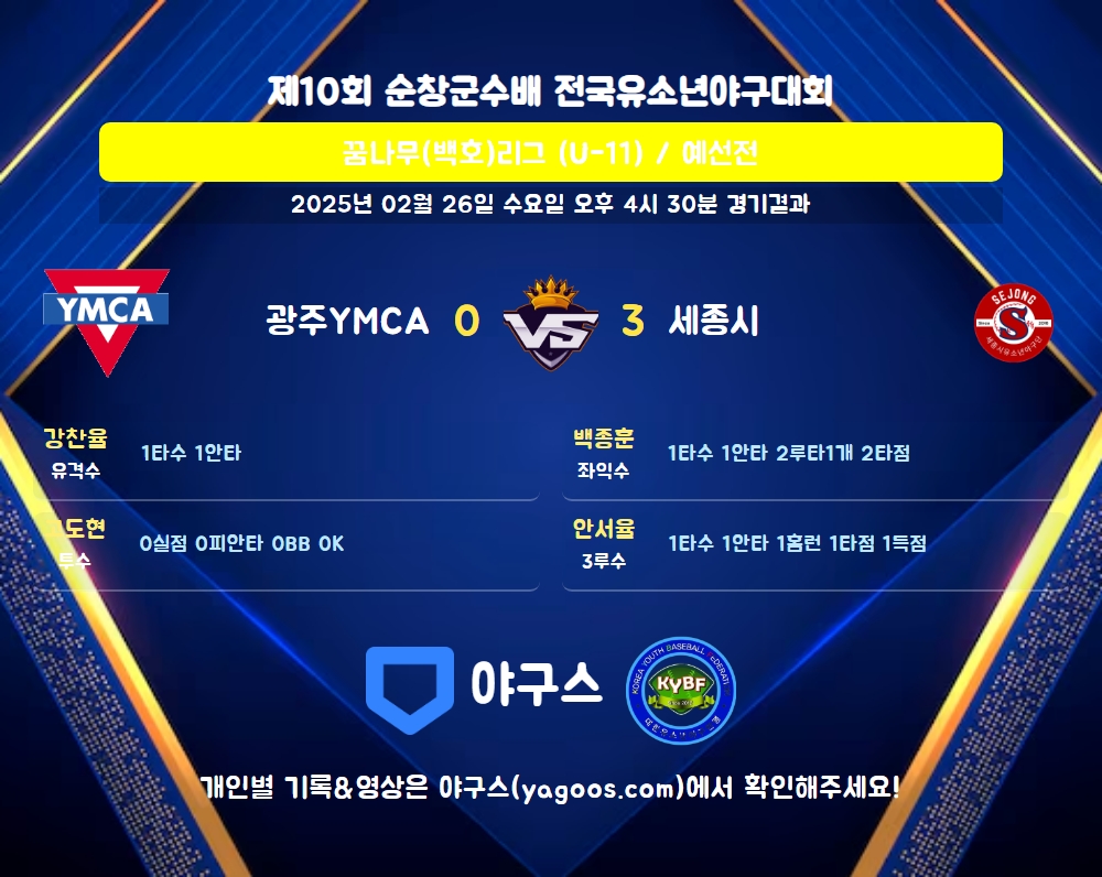 | 광주YMCA | 0 | 0 | 0 | 0 | 0 | 0 | 1 | 1 | 0 | 3 |