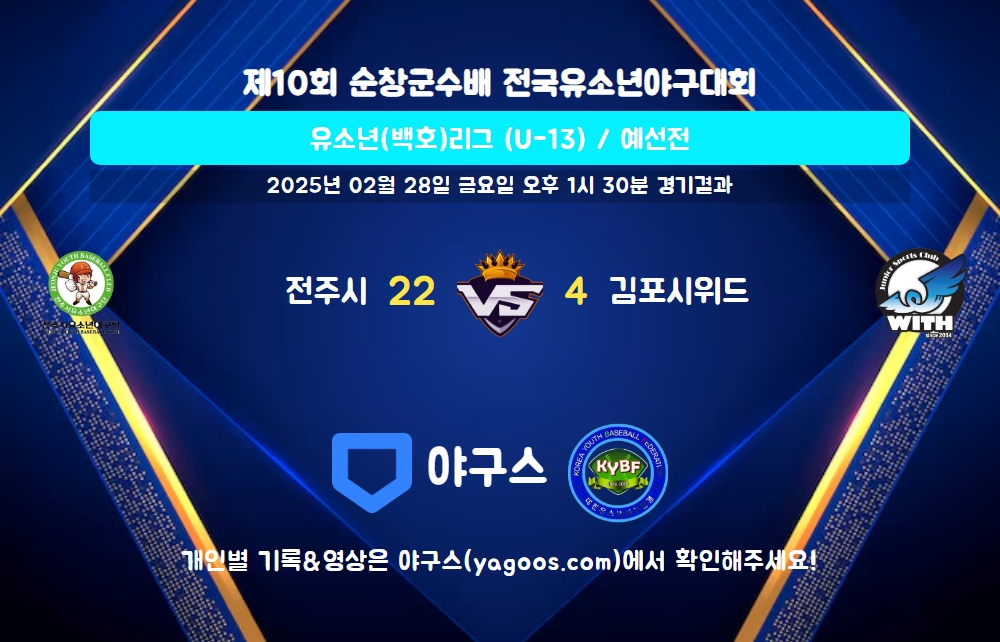 | 팀명 | 1회 | 2회 | 3회 | 4회 | 5회 | 6회 | R | H | E | B | L |