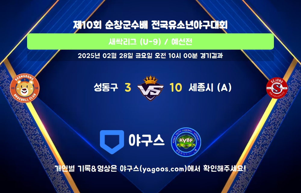 | 팀명 | 1회 | 2회 | 3회 | 4회 | 5회 | R | H | E | B | L |
