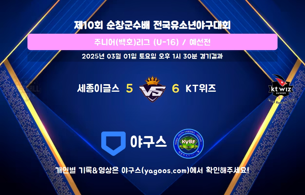 | 팀명 | 1회 | 2회 | 3회 | 4회 | 5회 | 6회 | 7회 | R | H | E | B | L |