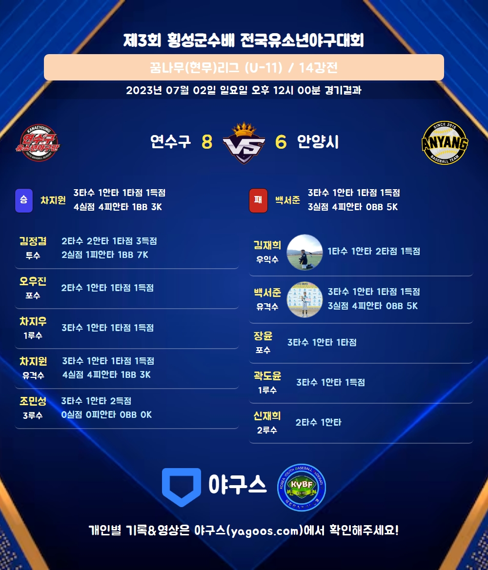 | 5 | 유 | 차지원(70) | 투땅 | - | 유플 | - | 유내안 | 3 | 1 | 1 | 1 | 0 | 1 | - | 0 | 0.333 |
