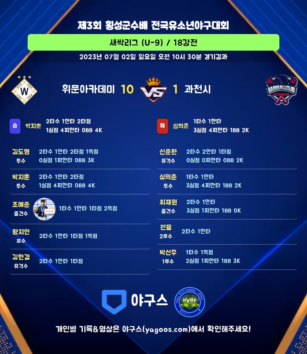 | 2 | 중 | 조예준(8) | 유내안 | 4구 | - | 4구 | 1 | 1 | 1 | 2 | 0 | 0 | 2 | 0 | 1.000 |