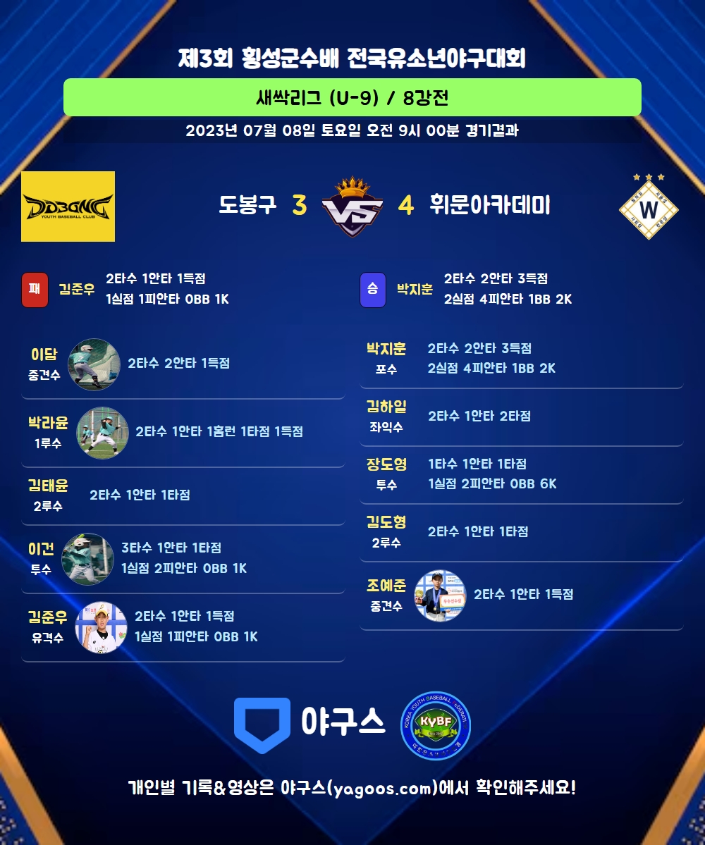 | 휘문아카데미 | 1 | 0 | 2 | 0 | 1 | 4 | 7 | 3 | 3 |
