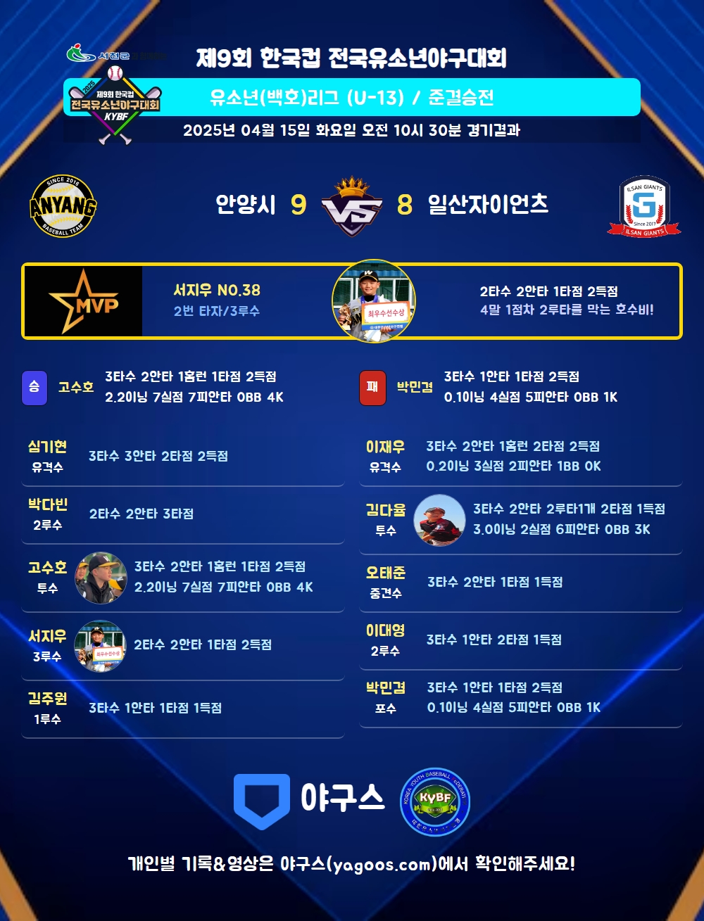 | 일산자이언츠 | 1 | 0 | 5 | 2 | 0 | 0 | 8 | 10 | 1 | 2 | 5 |