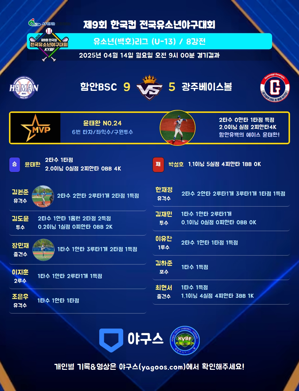 | 홈런 | 김도윤(4) |