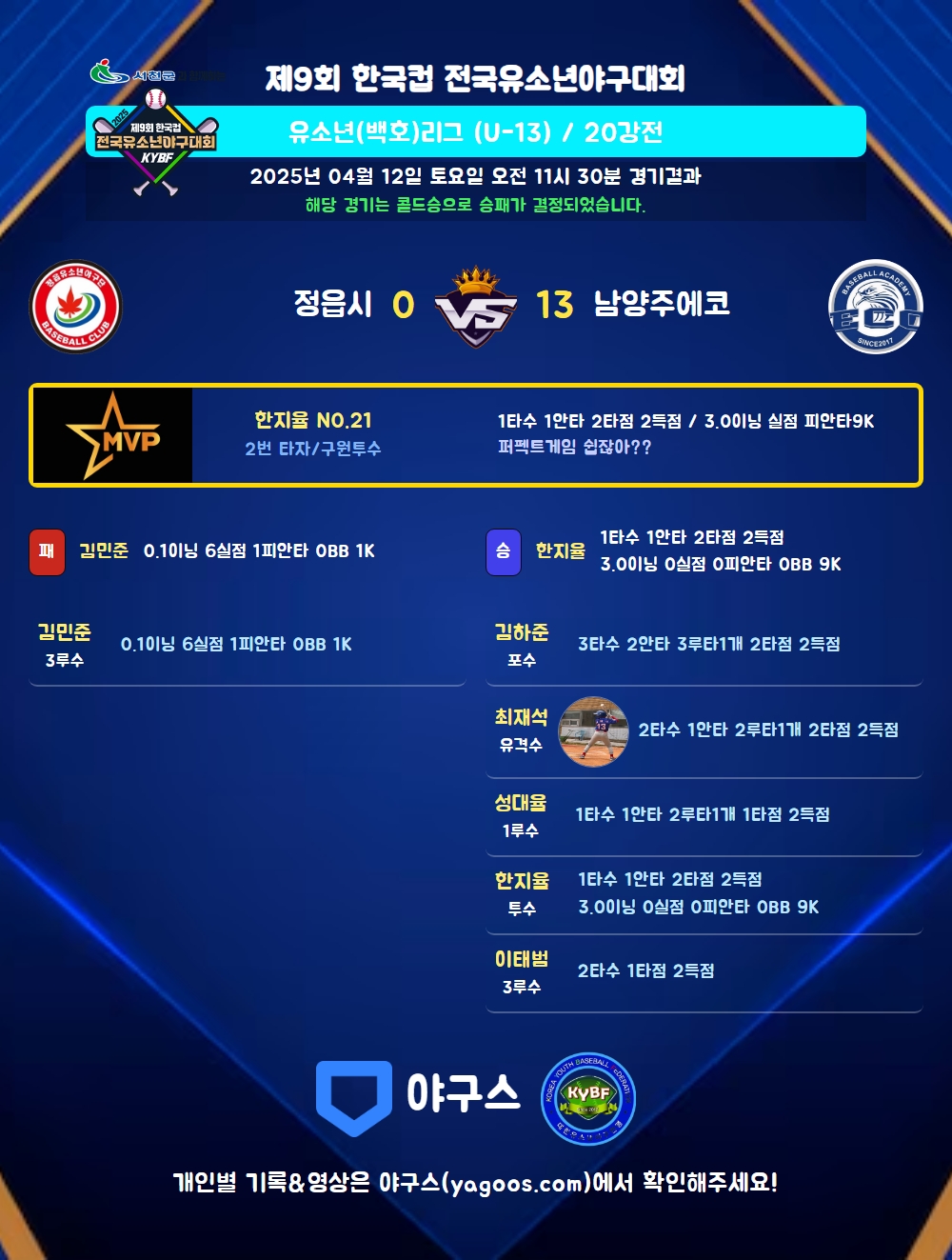 해당 경기는 콜드승으로 승패가 결정되었습니다.