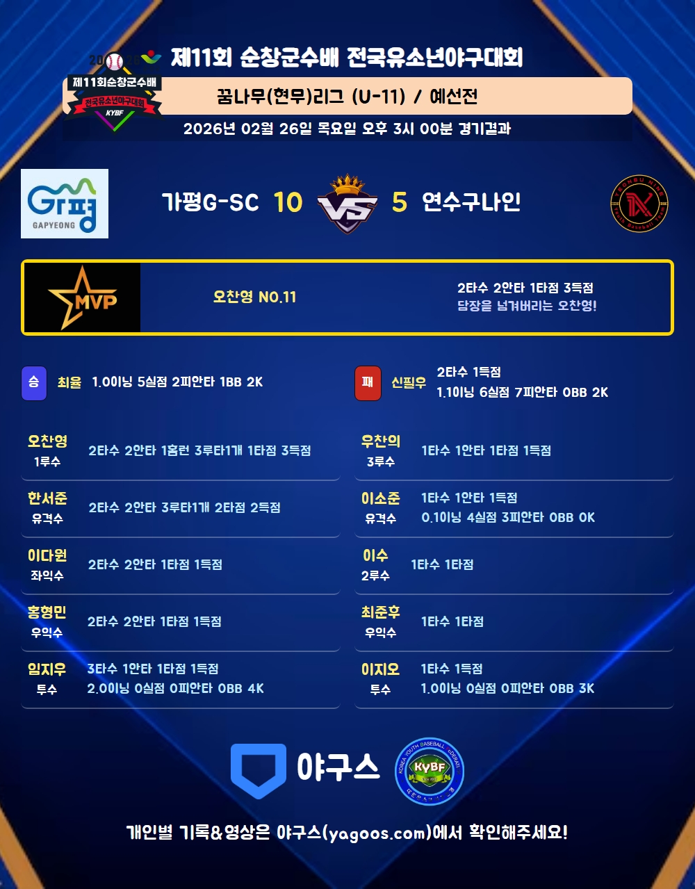 | 홈런 | 오찬영(11) |