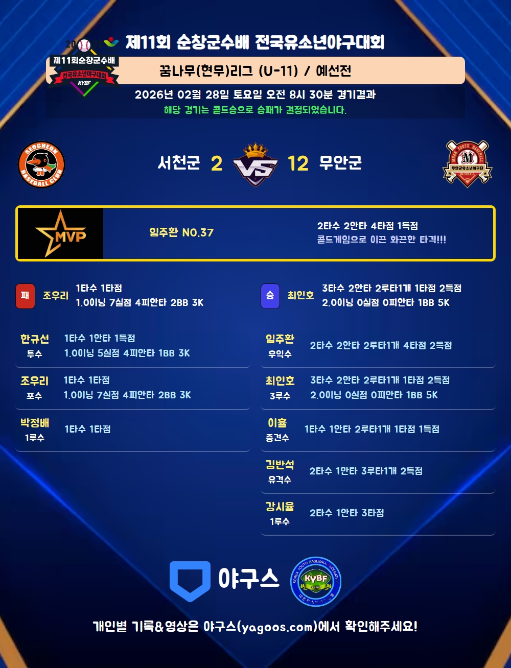 해당 경기는 콜드승으로 승패가 결정되었습니다.