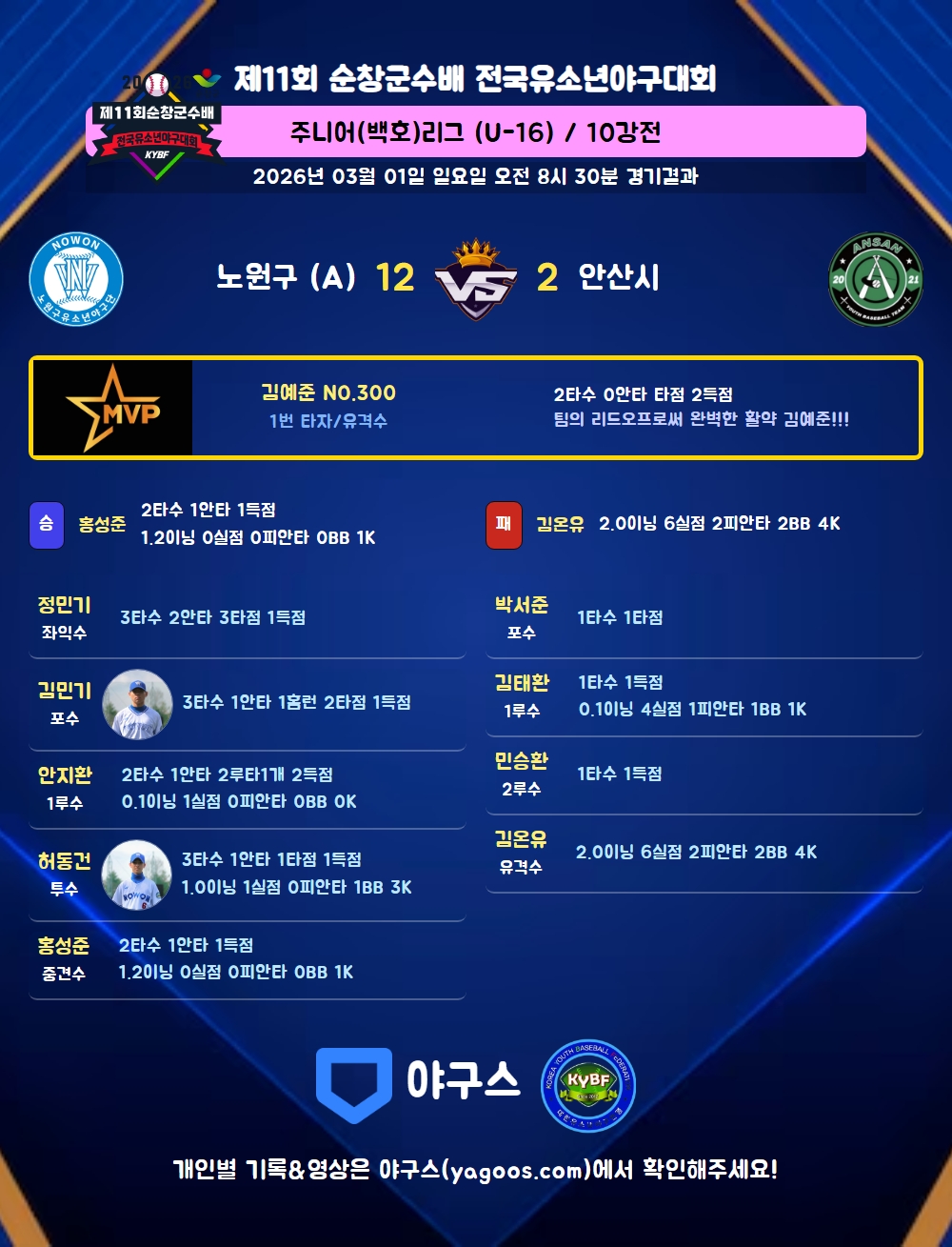 팀의 리드오프로써 완벽한 활약 김예준!!!