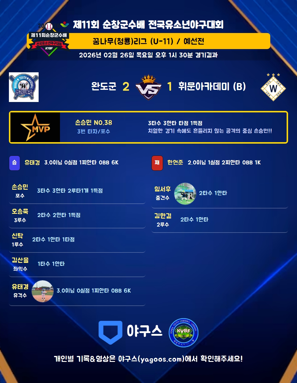 | 1 | 유태경(8) | 승 | 3.0 | 11 | 10 | 1 | - | 1 | 6 | 26 | - | - | 0 |