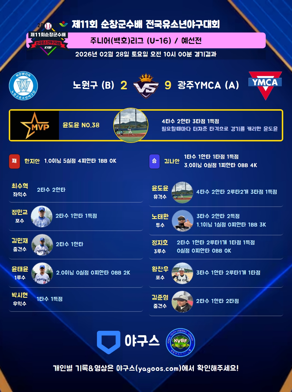 | 2루타 | 윤도윤(38) 황찬우(21) 정지호(44) |