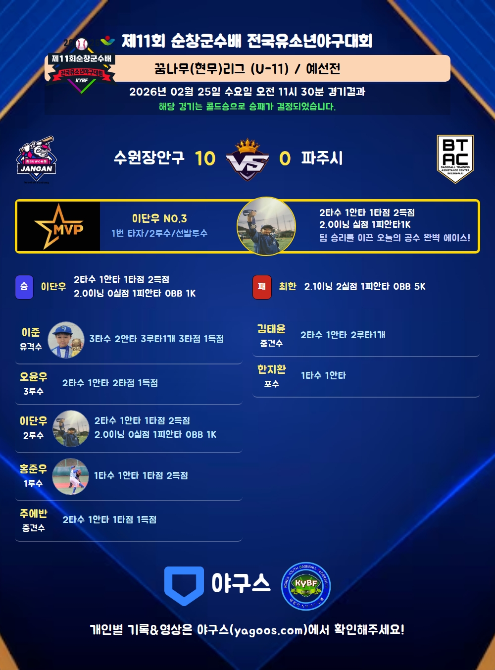 해당 경기는 콜드승으로 승패가 결정되었습니다.