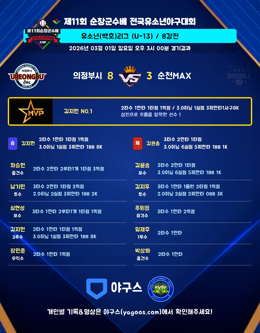 | 2 | 김지후(10) | - | 2.0 | 8 | 7 | 2 | - | 1 | 3 | 17 | 2 | 1 | 4.50 |