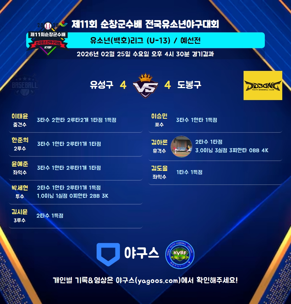 | 4 | 중 | 이태윤(10) | 투땅 | - | 좌선2(1타점) | - | 좌중2 | - | 3 | 2 | 1 | 1 | - | - | - | - | 0.667 |