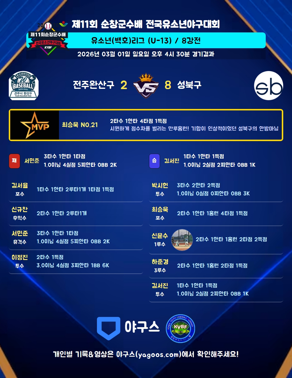 | 3 | 포 | 김서율(11) | 우선2(1타점) | - | 4구 | - | 4구 | 1 | 1 | 1 | 1 | - | - | 2 | - | 1.000 |