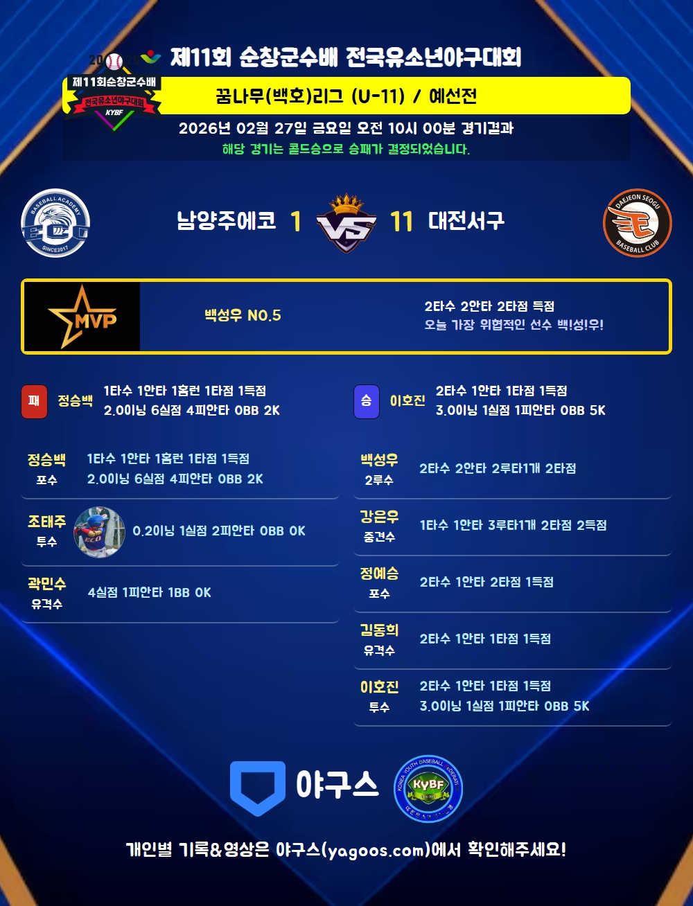 해당 경기는 콜드승으로 승패가 결정되었습니다.