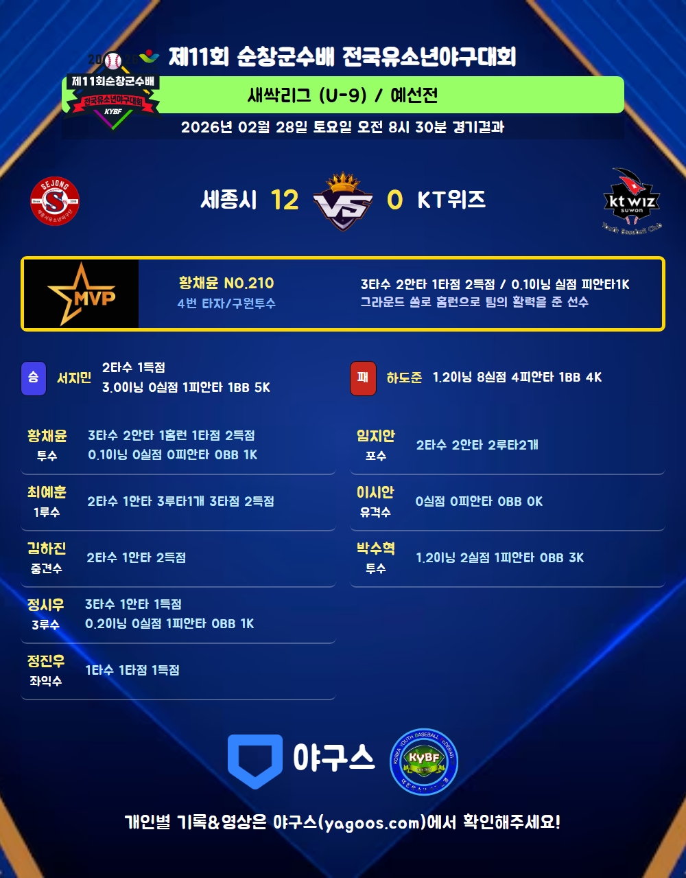 | 3 | 황채윤(210) | 세이브 | 0.1 | 1 | 1 | - | - | - | 1 | 3 | - | - | 0 |