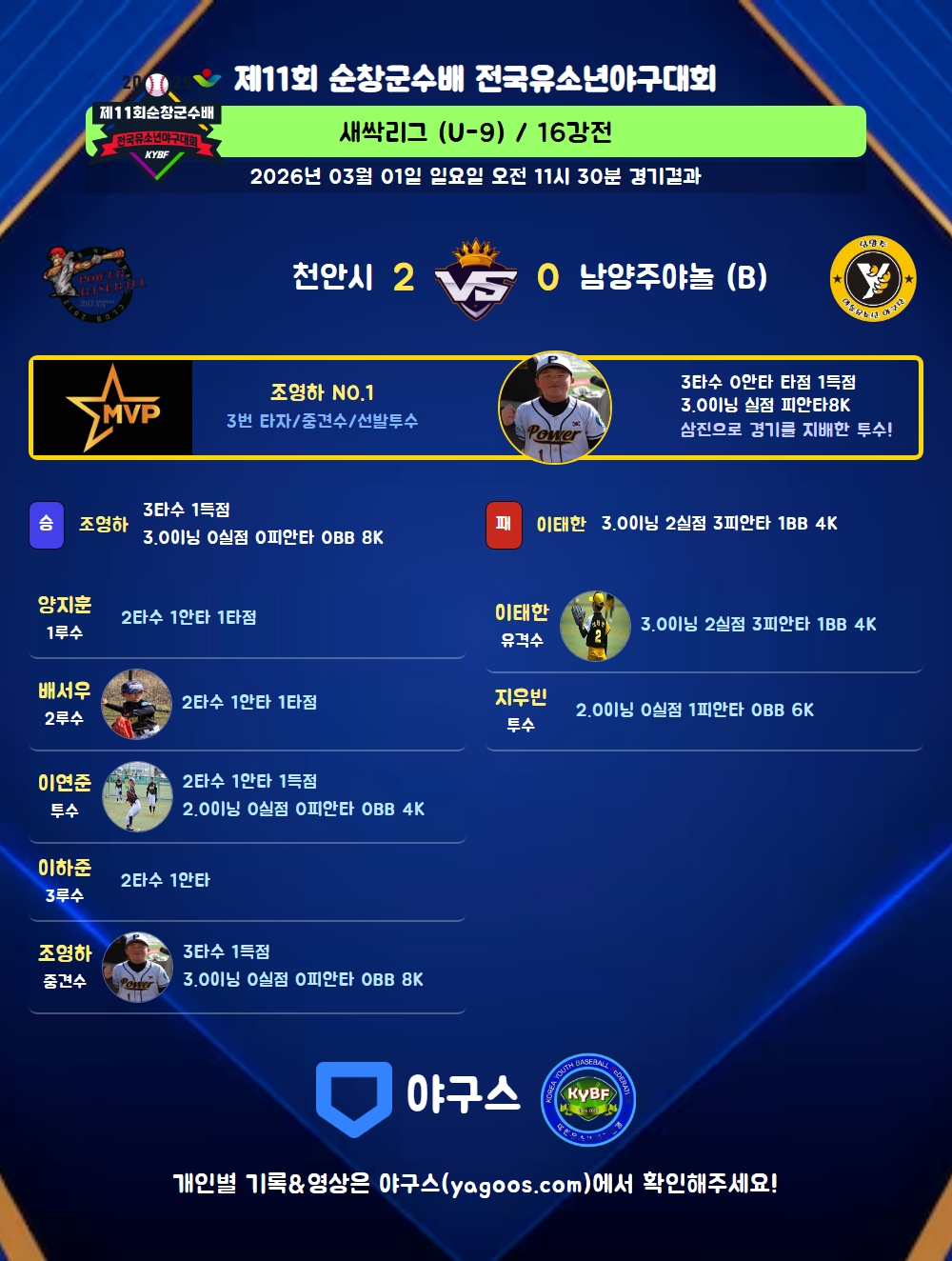 | 1 | 조영하(1) | 승 | 3.0 | 9 | 9 | - | - | - | 8 | 25 | - | - | 0 |