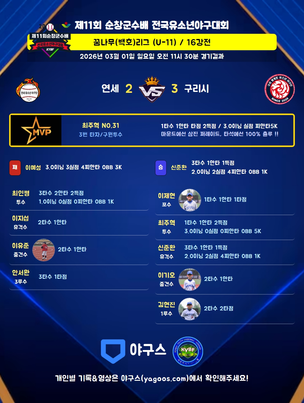 | 1 | 유 | 신준환(2) | 중안 | 2땅 | - | 1땅 | - | 3 | 1 | - | 1 | - | 1 | - | - | 0.333 |