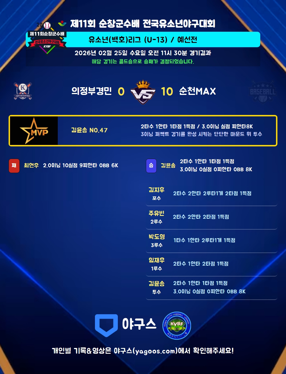 | 1 | 김윤송(47) | 승 | 3.0 | 9 | 9 | - | - | - | 8 | 36 | - | - | 0 |