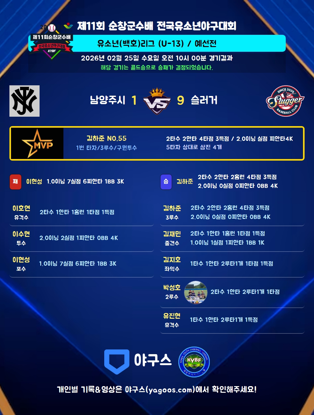 | 홈런 | 이호연(1) 김하준(55) 김재민(21) |