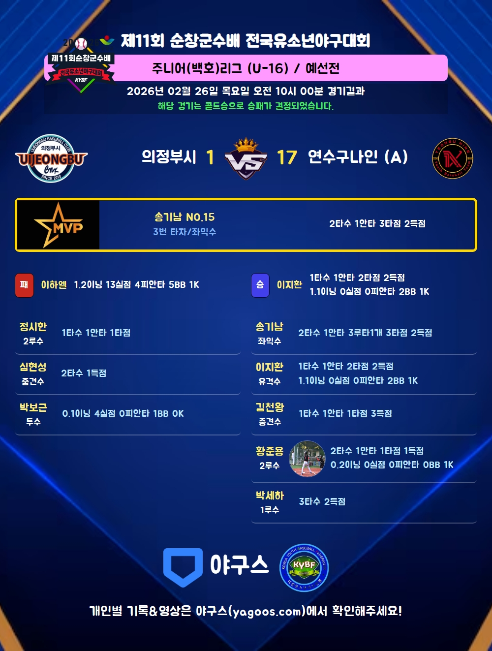 해당 경기는 콜드승으로 승패가 결정되었습니다.