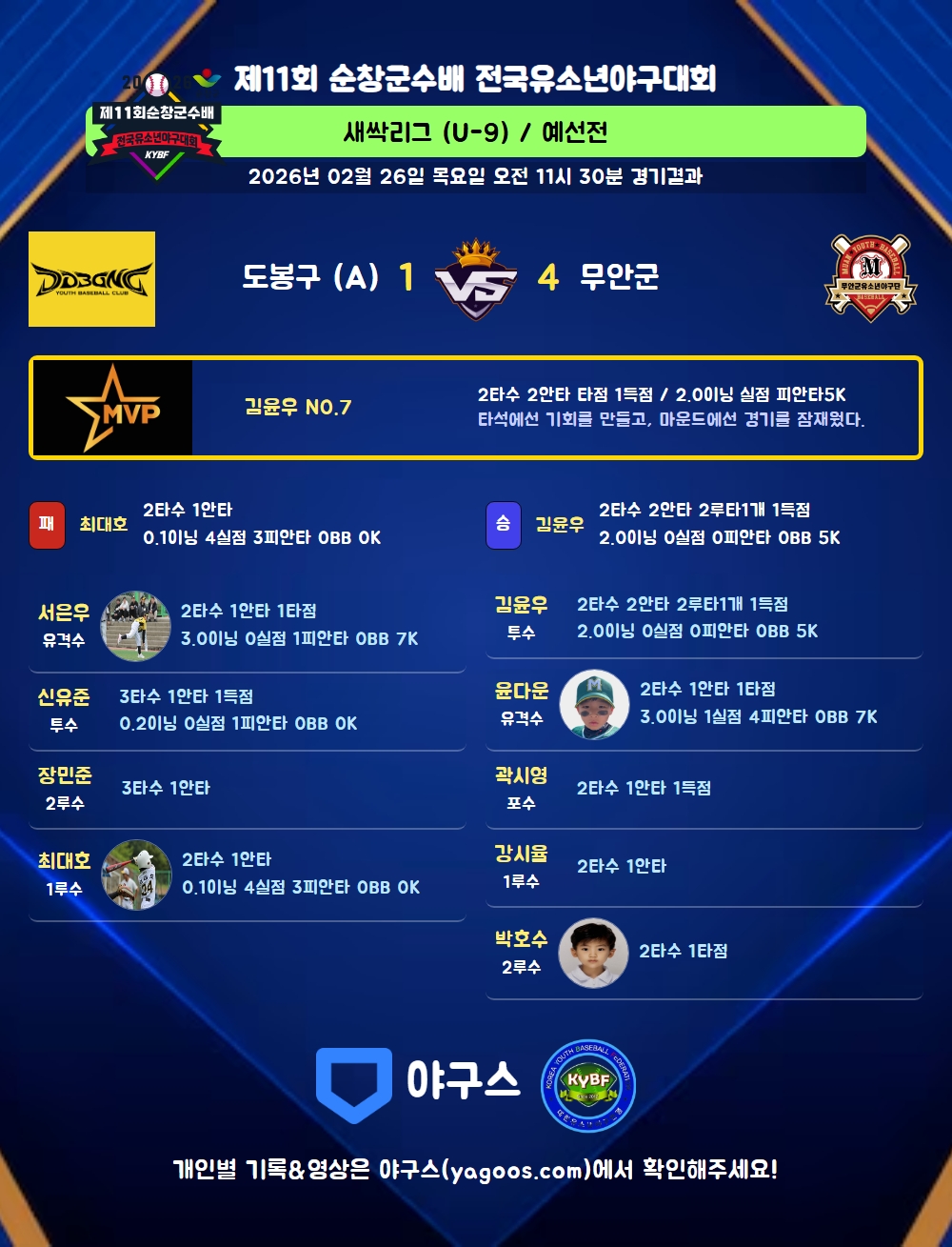 | 2 | 김윤우(7) | 승 | 2.0 | 7 | 6 | - | - | 1 | 5 | 35 | - | - | 0 |