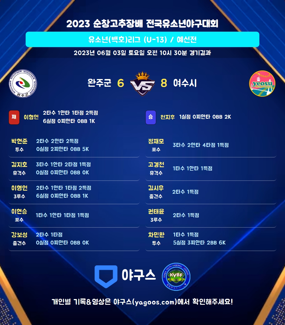| 2 | 서일우(23) | - | - | 0 | 0 | 0 | 0 | - | 0 | 1 | 0 | 0 | 0 |