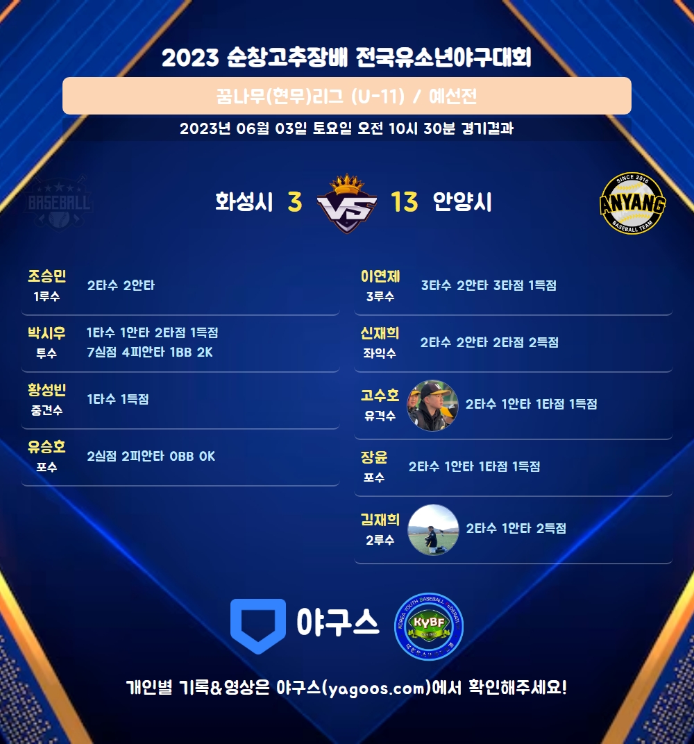| 3 | 一 | 조승민(9) | - | - | - | 2 | 2 | 0 | 0 | 0 | 3 | - | 0 | 1.000 |