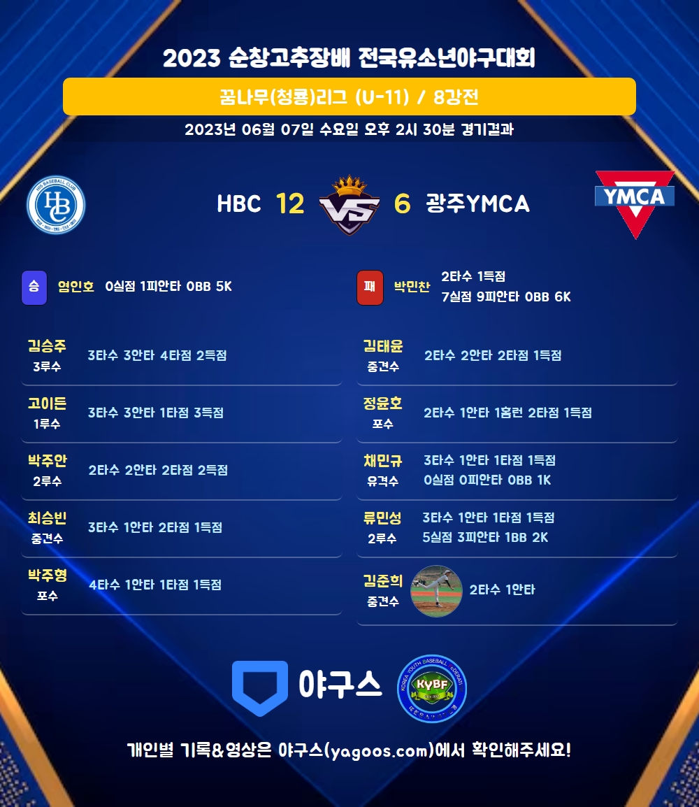 | 7 | 중 | 김준희(9) | - | 유내안 | - | 삼진 | - | 2 | 1 | 0 | 0 | 0 | 0 | - | 1 | 0.500 |
