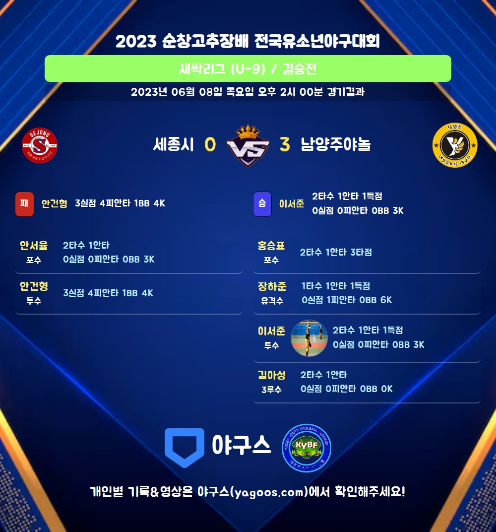 | 2 | 一 | 윤지후(3) | 1땅 | - | - | 4구 | - | 1 | 0 | 0 | 0 | 0 | 0 | 1 | 0 | 0.000 |