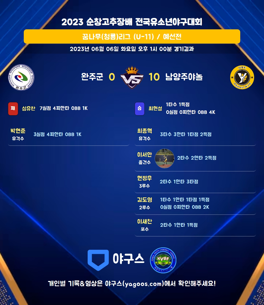 | 9 | 투 | 심유찬(10) | - | - | 2땅 | 1 | 0 | 0 | 0 | 0 | 0 | - | 0 | 0.000 |