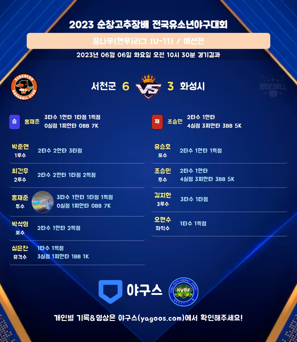 | 1 | 투 | 홍재준(1) | 유땅 | 좌전안 | 유땅 | - | 3 | 1 | 1 | 1 | 0 | 3 | - | 0 | 0.333 |