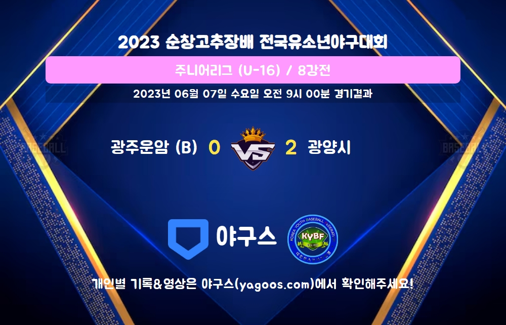 | 팀명 | 1회 | 2회 | 3회 | 4회 | 5회 | 6회 | 7회 | R | H | E | B | L |