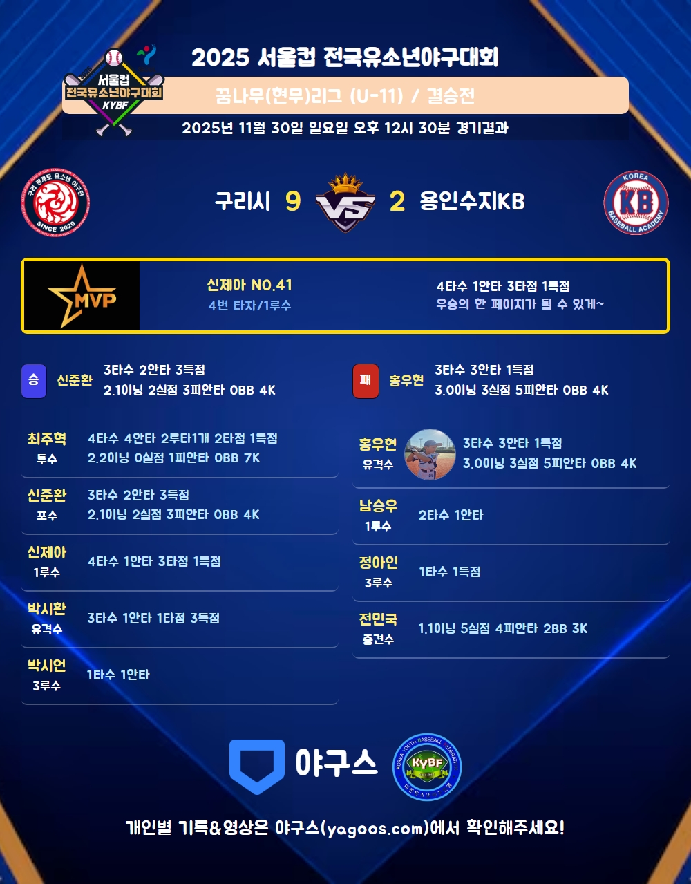 | 9 | 좌 | 한도윤(47) | - | 삼진 | - | 삼진 | 1땅 | - | 3 | 0 | - | - | - | - | - | 2 | 0.000 |