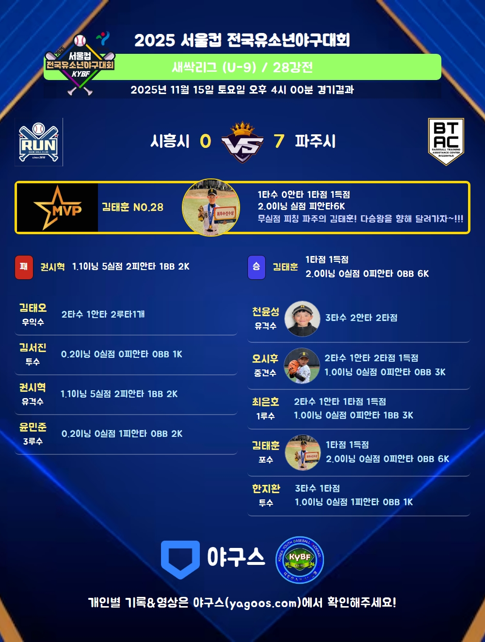 무실점 피칭 파주의 김태훈! 다승왕을 향해 달려가자~!!!