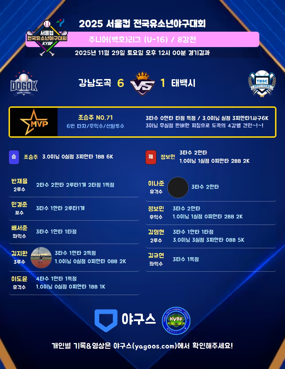 3이닝 무실점 완벼한 피칭으로 도곡의 4강행 견인~!~!