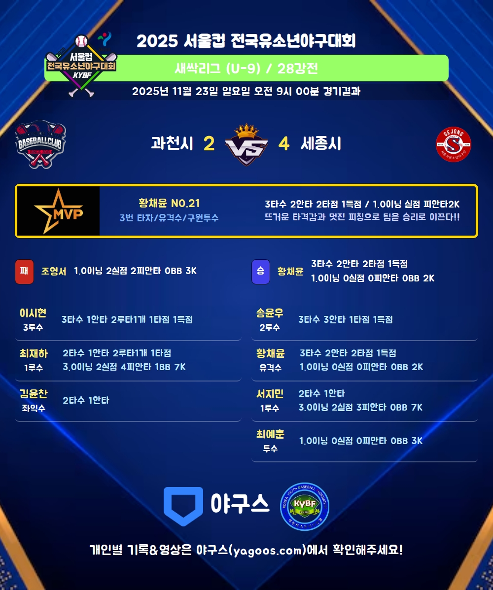| 9 | 좌 | 박승빈(247) | - | - | 삼진 | - | - | 1 | 0 | - | - | - | - | - | 1 | 0.000 |