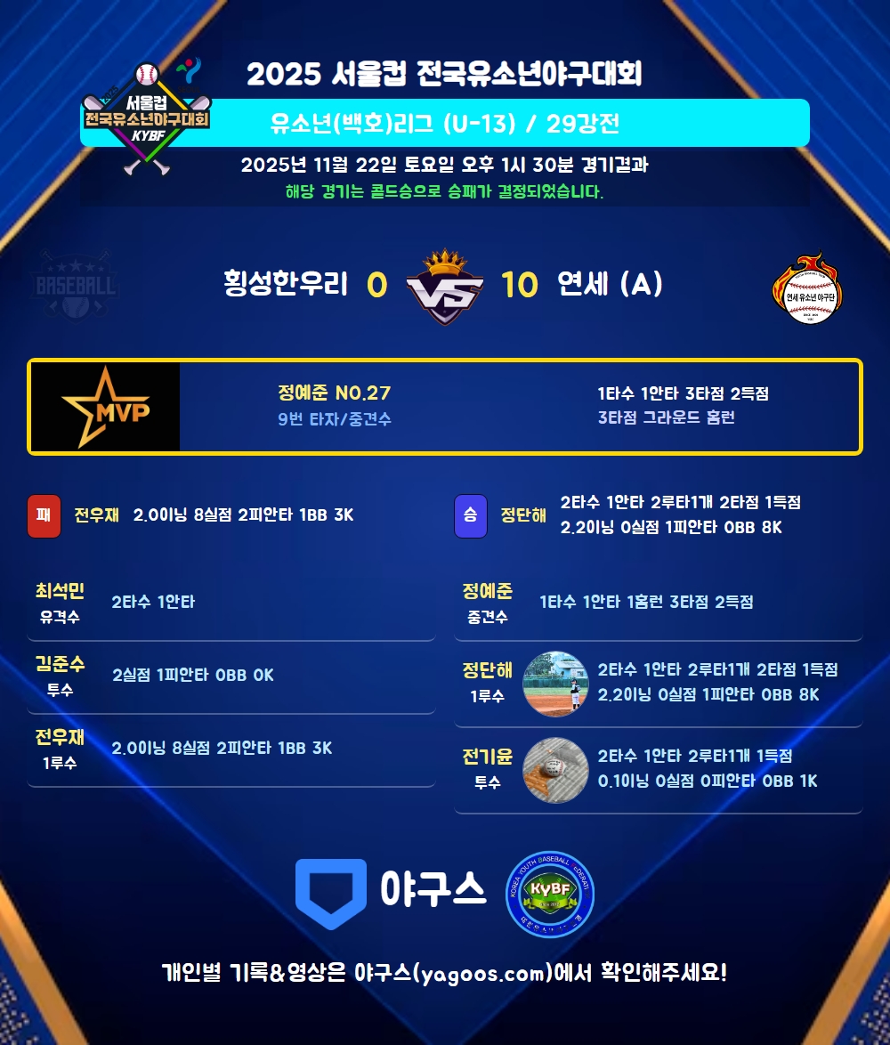 해당 경기는 콜드승으로 승패가 결정되었습니다.