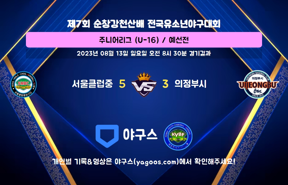 | 팀명 | 1회 | 2회 | 3회 | 4회 | 5회 | 6회 | R | H | E | B | L |
