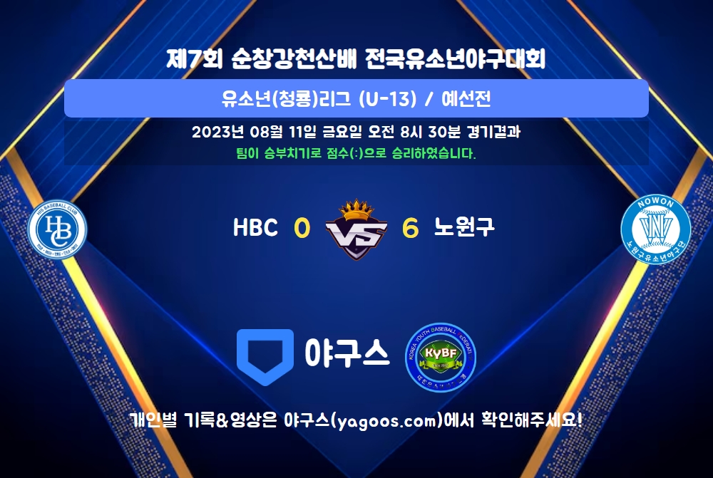 | 팀명 | 1회 | 2회 | 3회 | 4회 | 5회 | 6회 | R | H | E | B | L |