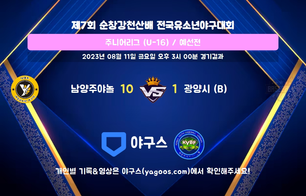 | 팀명 | 1회 | 2회 | 3회 | 4회 | 5회 | 6회 | R | H | E | B | L |