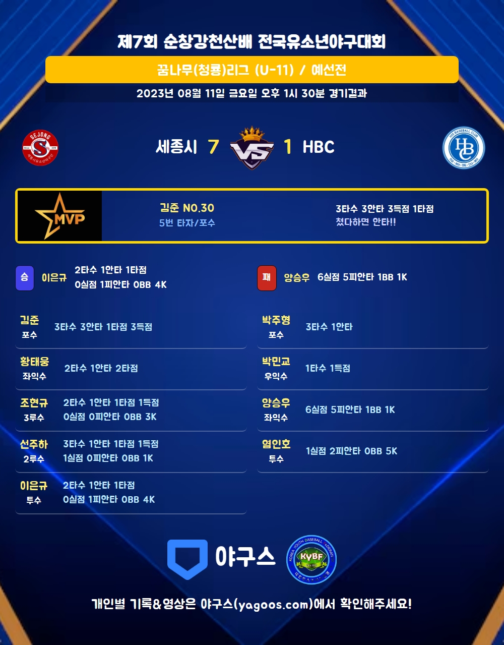 | 4 | 二 | 선주하(11) | - | 투땅 | - | 우월2 | 중플 | 3 | 1 | 1 | 1 | 0 | 1 | - | 0 | 0.333 |