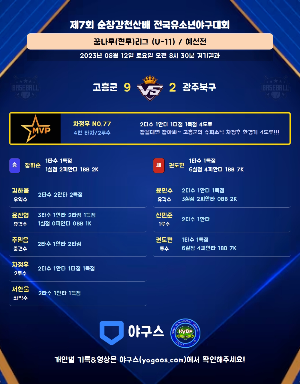 | 2 | 유 | 윤민수(17) | 유내안 | - | 투플 | - | - | 2 | 1 | 0 | 1 | 0 | 1 | - | 0 | 0.500 |
